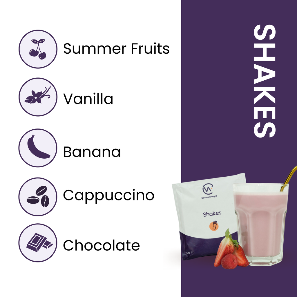 And finally... All of our shakes and soups are designed to provide you with a low-calorie meal that tastes delicious. Perfect as an occasional meal replacement or to be used in conjunction with a low-calorie diet plan.