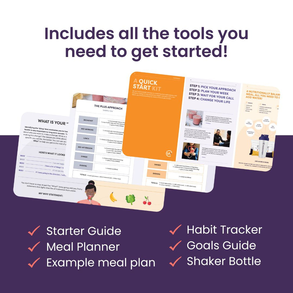 When you purchase a Quick Start Kit you will also receive a starter guide, habit tracker, sample meal plan, your own meal planner and a goals guide to help you along the way!